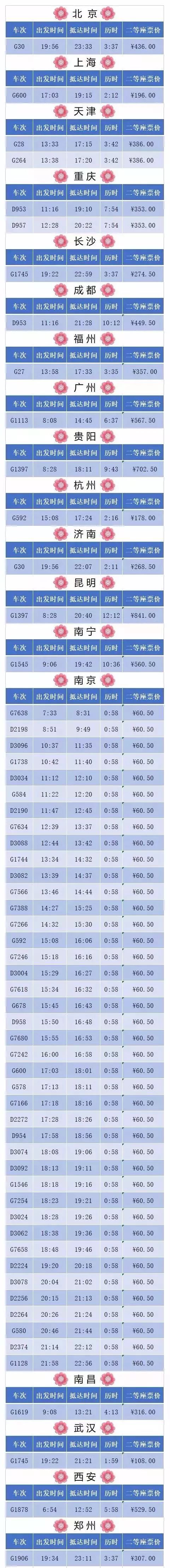 部分车次并非任何日期都开行,具体车次、时间请以12306官网为准。