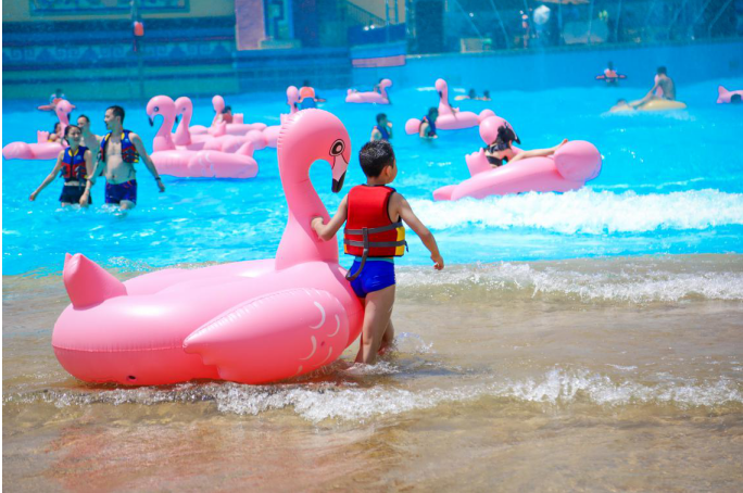 前来嗨玩的朋友可以在超一万平米的巨型风洞造浪池中,感受原汁原味的海滨风情;在大喇叭、超级碗、天地滑道、彩虹飞毯上极速飞行,做最会玩水的玛雅勇士;到宝贝水城、玛雅水寨舒缓身心,驱赶暑气燥热,也能够在颇受年轻人喜爱的双龙过山车上感受极速上升又迅速坠落的超爽体验,小朋友还可以在多彩滑水道来一场趣味十足的戏水较量,绝对让人大呼过瘾。