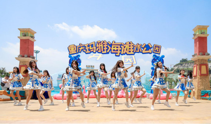 6月9日,重庆玛雅海滩水公园全新升级开园。在盛大的开幕典礼上,人气偶像女子团体CKG48 Team C 空降现场,以一曲《梦境冒险》点燃夏日狂欢。10000只气球在倒计时的呐喊声中绚丽绽放,玛雅海滩水公园开门迎客。
