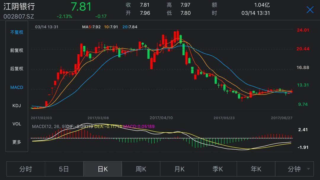 而在有关方面对两只次新银行股的走势加以关注,两只个股频频临时停牌后。相关个股又出现了不计成本的下跌。江阴银行在5月2日开始四度触及跌停。张家港行在4月6日起五度触及跌停。这种走势,一方面体现了操纵个股的凶险,同时也展现出有关操纵者出货时的肆无忌惮。