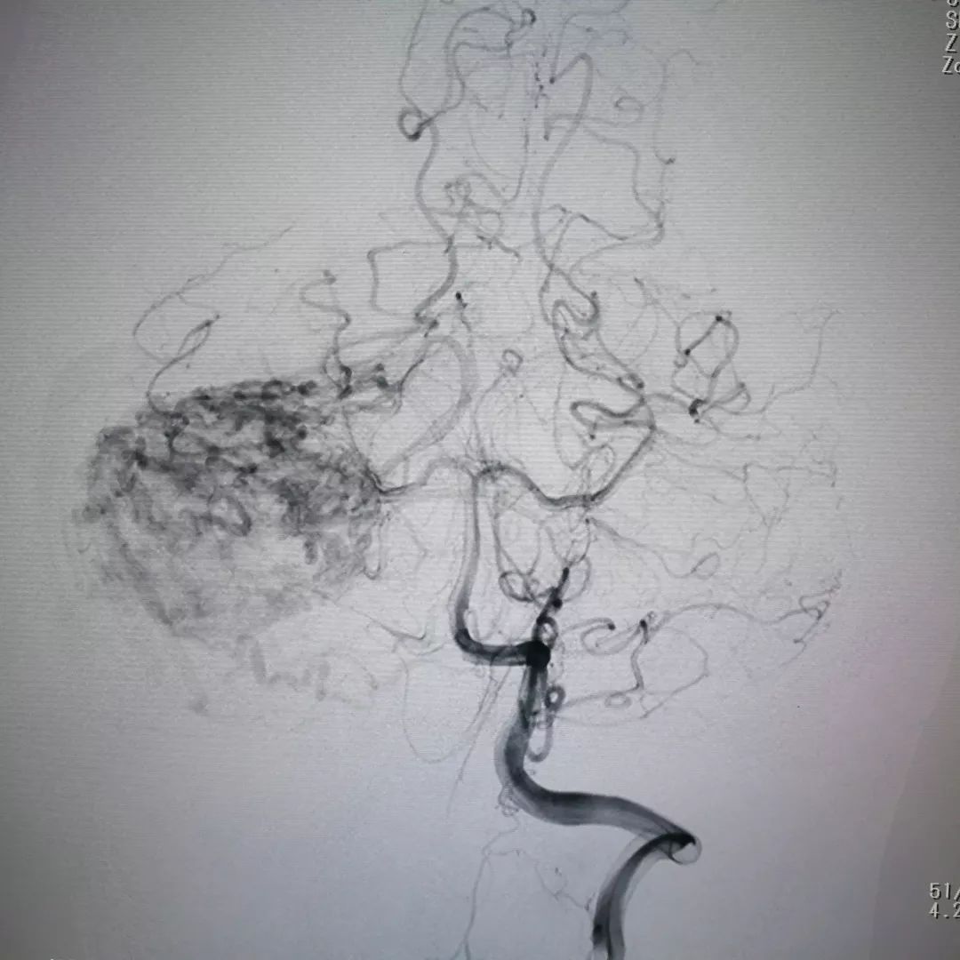 复查造影提示肿瘤内大部分血窦被堵塞,肿瘤内血液供应明显减少,从而达到降低手术风险减少术后并发症的目的
