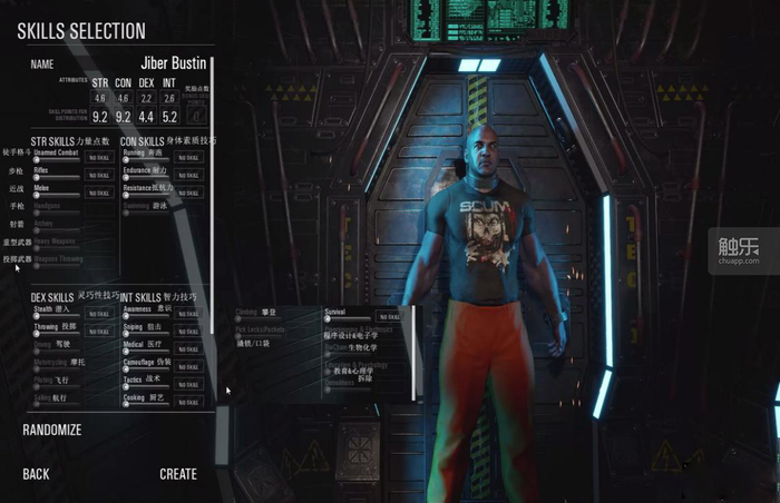 从创建人物开始,复杂的技能和属性界面就让人感到头晕目眩。一个现实中的正常人应有的属性都可以在游戏角色身上找到对应的参数,比如角色的体重、身材,不仅会影响人物外观,还会决定你能背负的物品重量,过胖的角色行动速度和身体灵活性都会受到影响,太瘦弱则会缺乏耐力,跑两步便气喘吁吁。身体属性一栏还拥有诸如心率、饥渴值、感染值、代谢率等等数值,分别对应不同人物状态和健康程度,玩家的行动会频繁影响这些数值的变动。