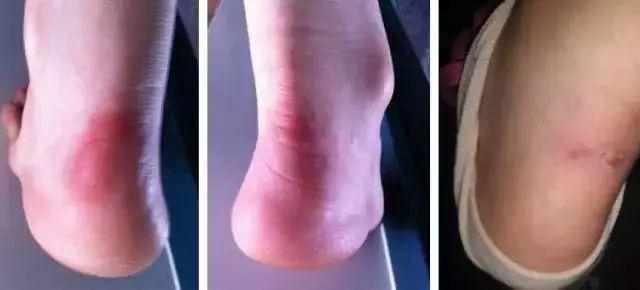 水泡破开、流血,沾水就疼。贴个创可贴吧,走一段时间,都撸得卷起黑屑屑啊。