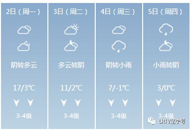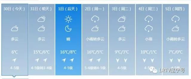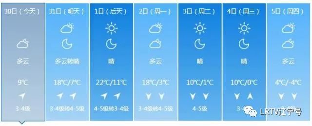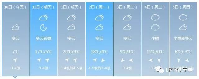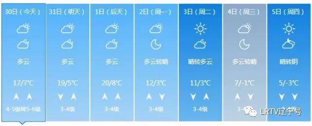 2日天气将出现变化,全天云量较多,最高气温只有17℃,北风也取代了西南风,大家要小心感冒着凉。3日气温继续下降,4日、5日沈城还将迎来降雨。