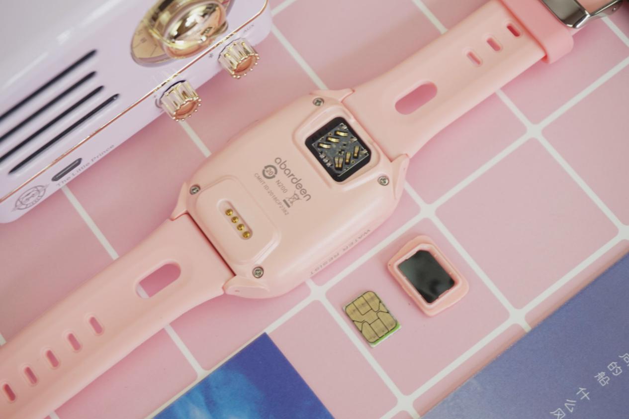阿巴町 N2儿童智能手表的SIM卡安装与其他儿童手表略有区别。阿巴町 N2儿童智能手表的安装位置设计在了手表背面,没有采用普遍的侧面安装。