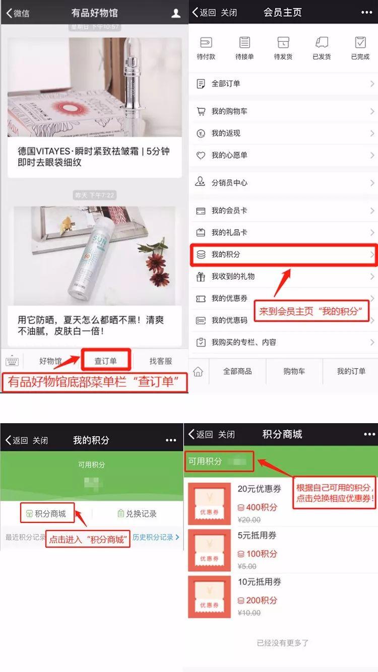馆长看到后台有很多小伙伴留言还不知道积分可以干嘛,今天馆长就给大家做了一个积分换券的流程图,操作十分简单,可以查看到自己的积分,并且换取相应的优惠券,而且都是无门槛的优惠券,毫无套路!