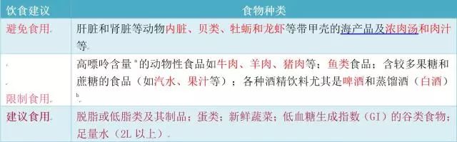 表1:高尿酸血症与痛风患者膳食指导