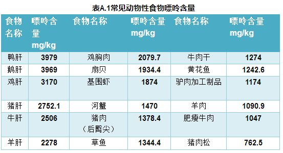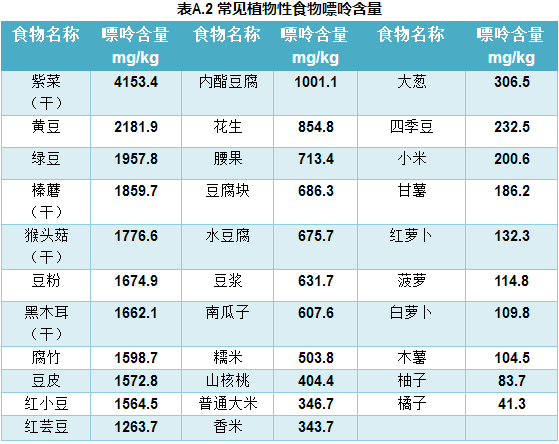 附表:常见食物嘌呤含量