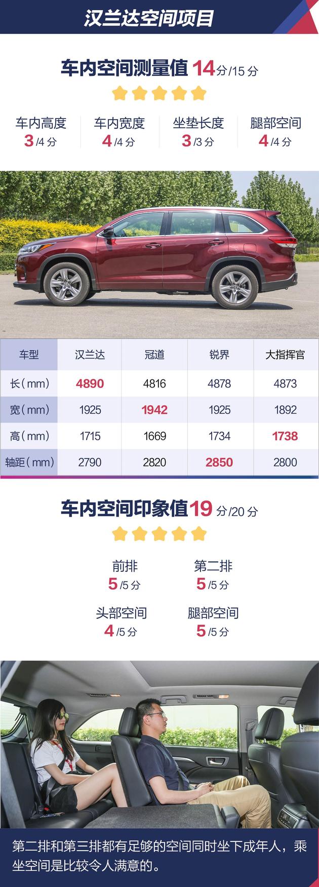 汉兰达最大的优势还是它超强的空间实用性,除此之外,其它各方面的表现它也没有明显不足,做出一台没有明显缺点的车并不容易,这也是汉兰达长期以来都能稳居销量榜首的原因。有关汉兰达更详细的测试成绩,请关注我们的超级评测报告吧!