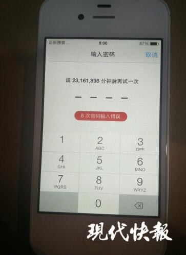 而姜峰将一台iPhone关闭网络,手动将时间调回至1974年,在多次输错密码后,手机屏幕出现了“请23,161,894分钟再试一次”的提示。“这属于小概率事件,非常罕见。”