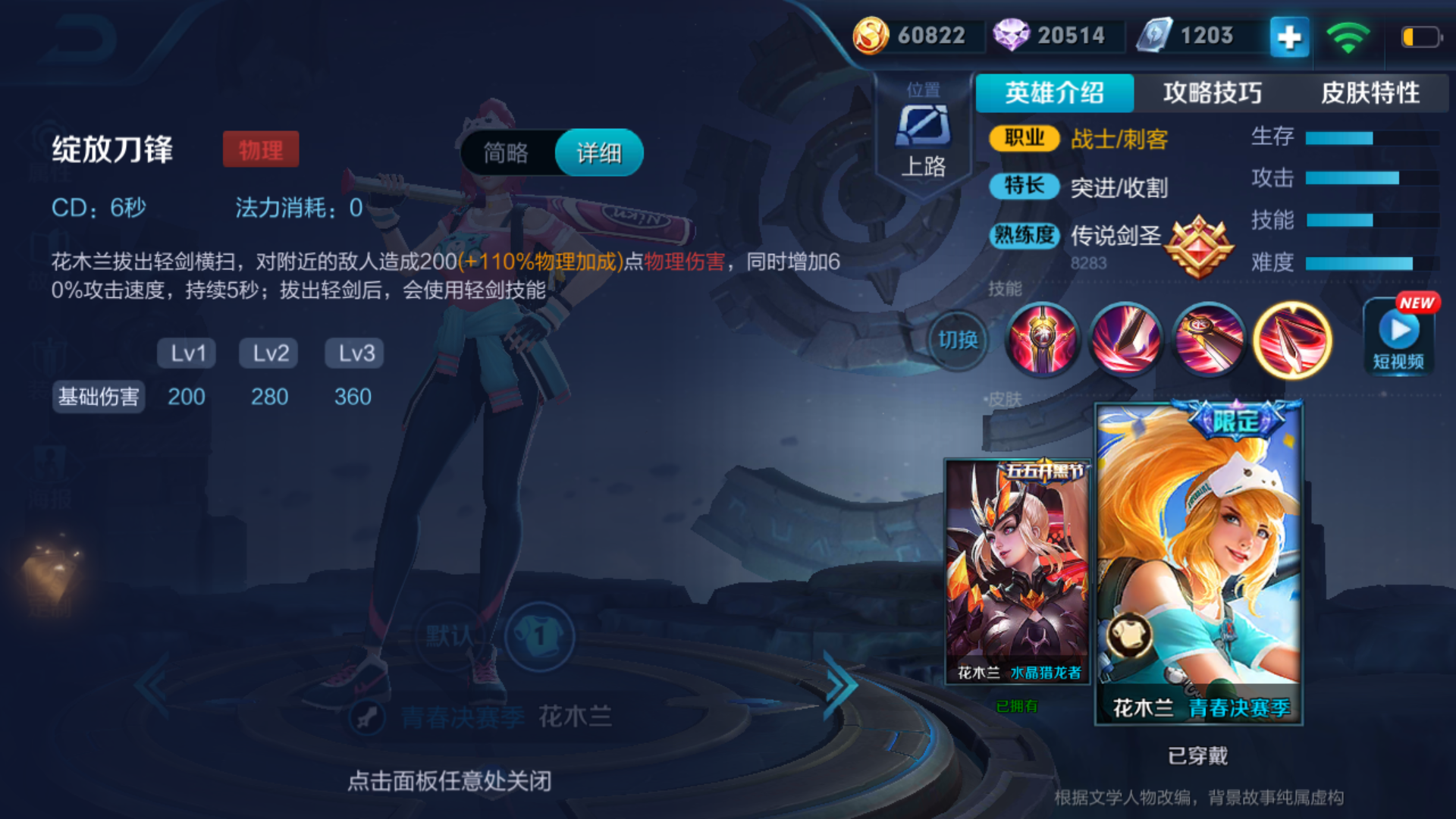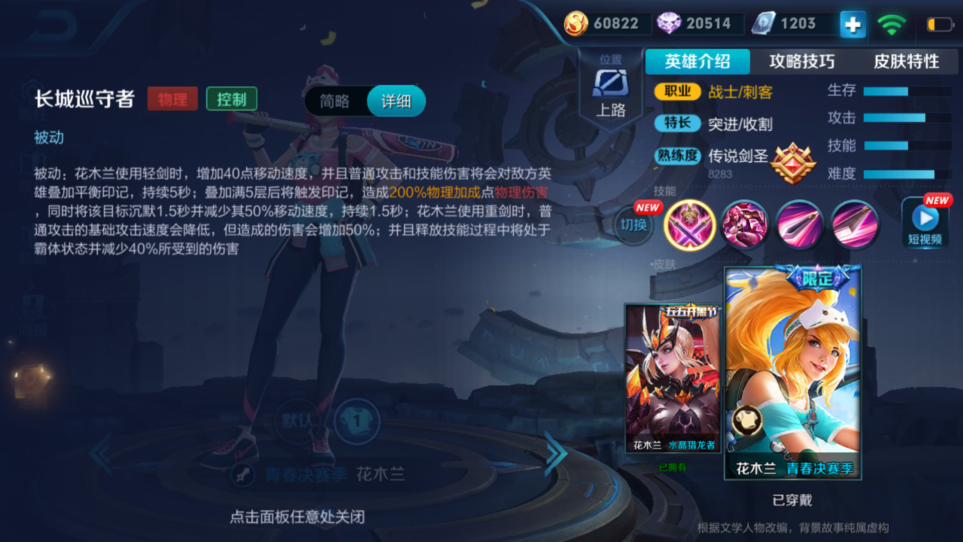 为何花木兰一直是大部分人的上分利器?虽然花木兰经过几次削弱,但靠着清线快,支援快,有伤害有控制,霸体强切后排等强势点,仍然可以称为边路一姐。在排位,巅峰赛,花木兰的非ban必选率可以说高达90%。