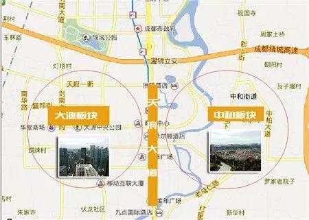 大源和中和,从出生上是很相似的:都曾隶属郊县,后被划入主城。一个位于天府大道西,一个位于天府大道东,呈轴对称分布,都有着高新区高大上的规划。