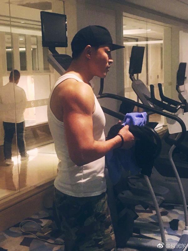 网友都觉得何润东很“身残志坚”,受伤的手绑上东西,只用手腕的力量,他还是在坚持健身,肱二头肌相当明显。估计这也算他康复训练的一部分吧。