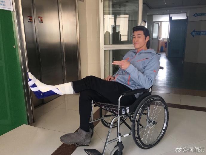 手折了两次了,何润东的腿也是相当不争气。多年前和粉丝打球,人仰马翻,伤过一次。