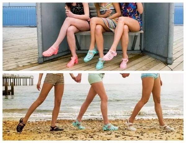 果冻鞋是女生的钟爱之一,也是不少欧美达人的潮流单品,塑料材质的凉鞋绝对胜任雨水的洗刷。
