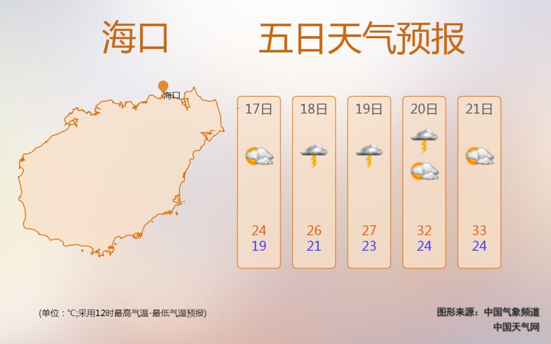 预计17日夜间到18日白天:北部湾海面,琼州海峡,海南岛东部、南部和西部海面,西沙、中沙群岛附近海面,多云有阵雨,偏东风5级,阵风6级;南沙群岛附近海面,多云有雷阵雨,偏东风5级,雷雨时阵风7级。