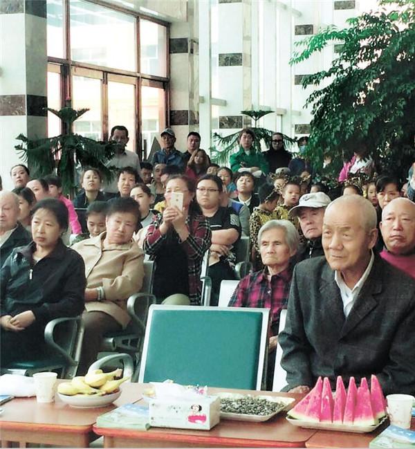 老人观看联欢会。